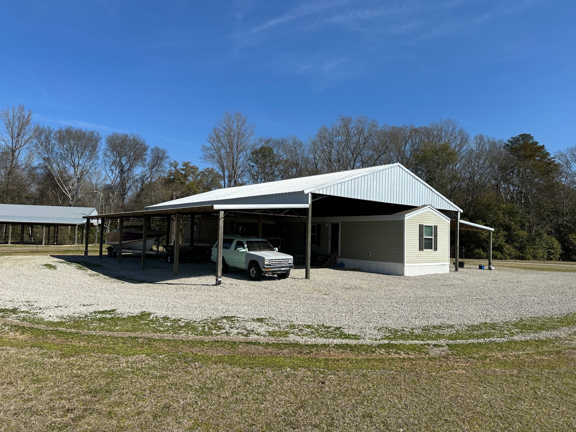 - 60' x 70' Metal Pavilion: Includes a spacious 2024 14' x 60' Southern Energy mobile home (840 sq. ft., 2 bedrooms, 2 baths, living room, kitchen with refrigerator/range), plus individual septic, county water, and a private well—modern, move-in ready comfort.